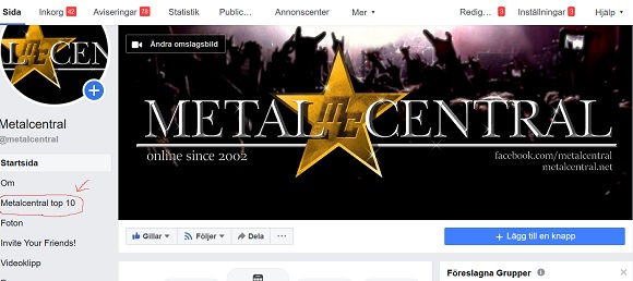 På bilden visas var på vår Facebooksida du hittar omröstningen. Omröstningen finns i menyn till vänster, under fliken "Metalcentral top 10".