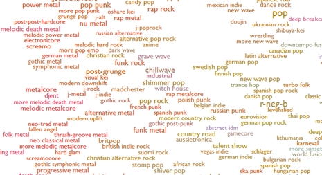 Jag snubblar över det här resonemanget när jag läser en text i The Guardian om en "dataalkemist" som har mortlat ned musiken i över tusen olika mikrogenrer (här är höstacken som du kan leta fram just din nål i: http://everynoise.com/engenremap.html). Om du känner dig nöjd över att ha lärt dig vad djent, usbm och screamo är kan du torka bort det där belåtna flinet prick nu. Det räcker nämligen inte långt på det här läxförhöret, som prövar dina kunskaper i orgcore, dreamo, charred death, fallen angel, unblack metal... Det är längesedan som låt gå-attityden "it's only rock'n'roll" var gångbar.