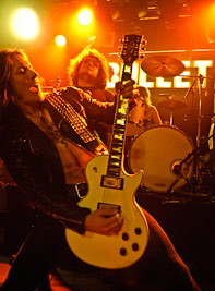 Heavy metal jävlar-stämningen är väl inte direkt skyhög minuterna innan BULLET går på scen denna kväll, främst beroende på att de flesta som befinner sig i Nöjesfabrikens rockbar denna kväll pimplar alkohol i närheten av, just det, baren. Karlstadspubliken är inte direkt kända för att hetsa upp sig särskilt mycket över ett band mindre än, säg, MOTÖRHEAD, men när Växjö-killarna väl uppenbarar sig lyckas de ändå få med sig en liten, men hängiven skara. Förvånande vore det ju annars, vi snackar trots allt om ett riktigt vasst liveband här. Även om jag verkligen älskar den überklassiska heavy metal som bandet står för så tycker jag att deras två plattor är något ojämna. Dock fortfarande bra, med flera givna toppar och det är tydligt att musiken är skriven för att framföras live.