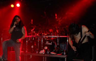 Kanadensiska KATAKLYSM har äran att fronta denna tour, och skall - som det visar sig - under en dryg timme verkligen visa publiken varför. Tunga "Like Angels Weeping The Dark" inleder, för att följas av "Manipulator Of Souls". Här visar enastående trummisen Max Duhamel att han gör skäl för sitt goda rykte, då han sannerligen är en upplevelse att skåda. Publiken är också med på noterna och visar med taktfasta rop att kanadensarnas feta metal uppskattas. "Prevail" följer, varpå sångaren Maurizio Iacono för första - men inte sista - gången denna kväll riktar uppmärksamheten mot basisten Stéphane Barbe: "Applaud Steph for being drunk for the 5th night in a row!". Publiken lyder självfallet snällt. Iacono är rutinerad, och uppvisar för övrigt riktigt bra publikkontakt kvällen igenom.