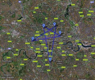...och så var det ju det här med evenemangets namn och geografiska utformning. Bandet kallar sin specialare "Pentagram Tour", och ser man hur spelställena knyts ihop på kartan framstår namnvalets briljans med all önskvärd tydlighet: