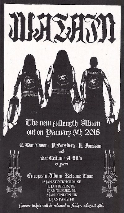 Den 5 januari släpper Uppsalabandet WATAIN nytt album, tillika det sjätte i ordningen. I samma veva ger sig bandet ut på en kortare turné med start i Stockholm på releasedagen av plattan. Biljetter till spelningen släpps imorgon fredag.