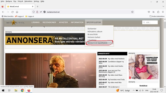 Nu kan du dela med dig av dina Spotifylistor på ett enkelt sätt på Metalcentral. Klicka bara på "Spotifylistor/Skicka in en Spotifylänk" på Metalcentrals förstasida, som du ser på bilden. Efter godkännande så hamnar din spellista under "Läsarlistor".