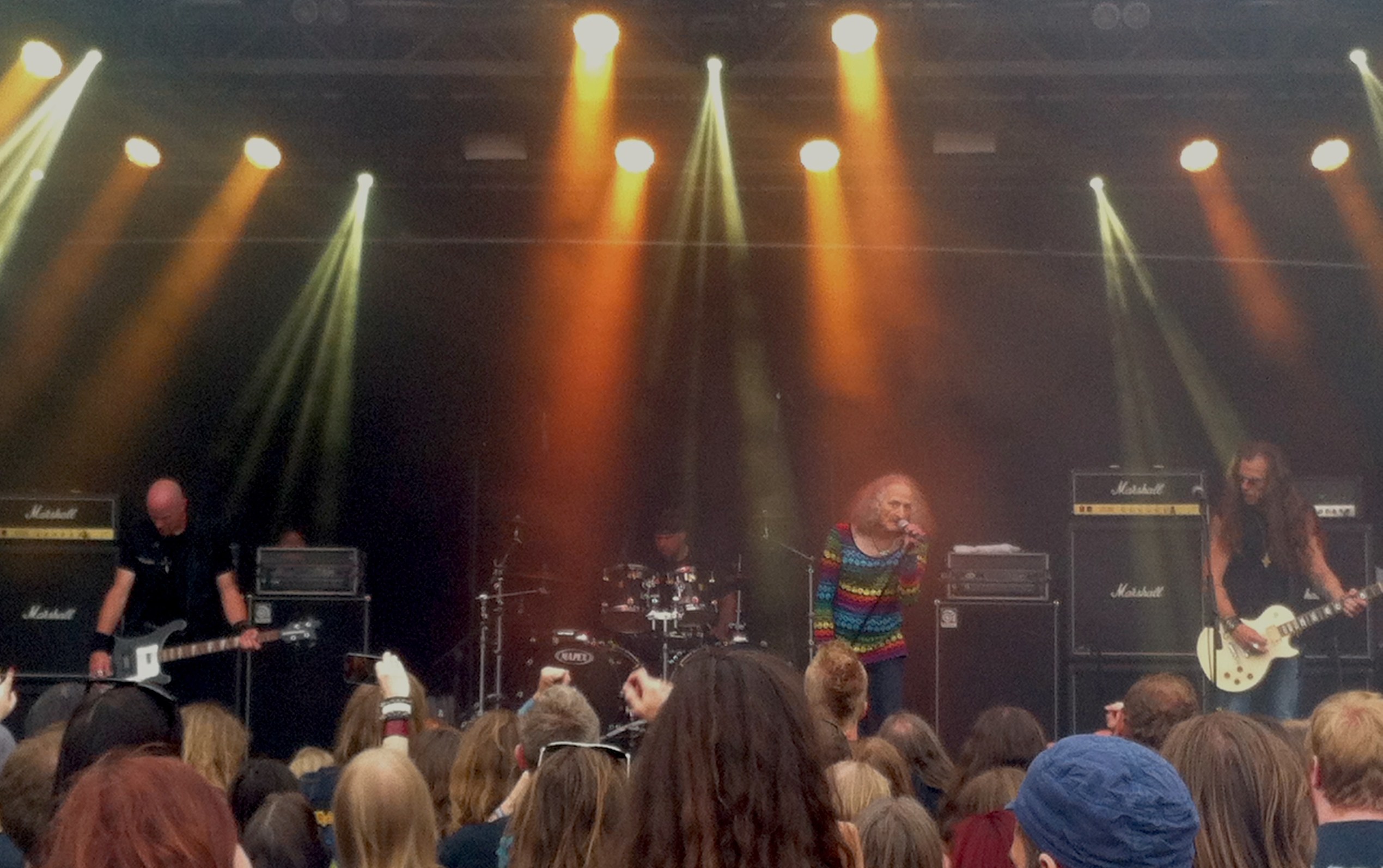 Kort efter PENTAGRAM är det dags för Peter Stjärnvinds skötebarn BLACK TRIP, vars fjolårsdebut golvade mången nostalgiker. Och nog levererar bandet även från scen. Kvintettetens klassiska hårdrock framförs med skärpa och Stjärnvind ser verkligen ut att njuta av gensvaret. Mest imponerad blir jag ändå av Joseph Toll, vars Paul Dianno-röst verkligen är som klippt och skuren för låtmaterialet. Tyvärr ställer tekniken till det under nya låten ”Danger” och när bandet går över tiden stryps musiken. Snopet både för publik och band.