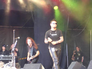 Anländer till festivalområdet tillsammans med mitt sällskap, som för övrigt består av kollegor från ett annat webzine (tänker dock inte bjuda på någon gratisreklam och avslöja vilket"), en bit ut på eftermiddagen lagom för att se DORO framföra sina två sista låtar. Den tyska metalldrottningen verkar vara i fin form, så det känns lite synd att man inte hann se mer.