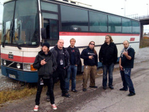 Så alles är bra förutom att dvdn i bussen inte funkar. Men det är ok ändå, Eetu, vår ljudtekniker vill bara se filmen Memento. Ingen bra film i turnébussen. När man knappt kan koncentrera sig på att spotta snusen, hur ska man kunna se en film där handlingen går baklänges?
