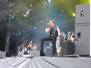 Mer intressant är då nästa band, Cincinnatibaserade BLACK VEIL BRIDES. Ett gäng ungtuppar som spelar någon sorts hybrid mellan sleaze och modern metal (typ SONIC SYNDICATE). De hårt sminkade flickfavoriterna bjuder publiken på en intensiv spelning fylld av spelglädje och klassiska poser. Trots att gruppen är relativt ny känns de redan som en väloljad livemaskin. Faktiskt en av de bättre spelningarna på årets festival. Helt klart ett band att hålla ögonen på!
