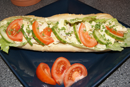Dags att fylla baguetterna som bakades igår med en oslagbar röra och kombination, kyckling och curry. Baguetten är egentligen ett franskt påhitt, men den har sedan 90-talet varit mer eller mindre stapelvara i Sverige. Det är inte så konstigt att vi svenskar tagit den till vårt hjärta, en baguette med någon god fyllning är en alldeles utmärkt liten måltid till lunch och även som festivalmat för alla hungriga rockare.