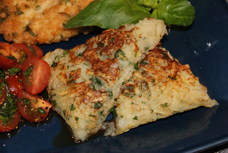 Blanda den rivna potatisen med persiljan, salt och vitpeppar i en skål.